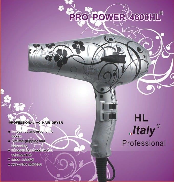 Επαγγελματικός στεγνωτήρας μαλλιών Hair Lux Italy Super Power 4600 SILVER, με εργονομικό σχεδιασμό, με 3 μέτρα καλώδιο , 2400 WATT  με 2 ταχύτητες και 4 θερμοκρασίες , επαγγελματικό μοτέρ μεγάλης διάρκειας AC MOTOR , πολύ δυνατή πίεση και ένταση αέρα για γρήγορο στέγνωμα μαλλιών , με αποσπώμενο φίλτρο  αέρα για εύκολο καθαρισμό.Στη συσκευασία συμπεριλαμβάνονται  2 ακροφύσια ( στόμια ) .Διαθέσιμο στο χρώμα της εικόνας.