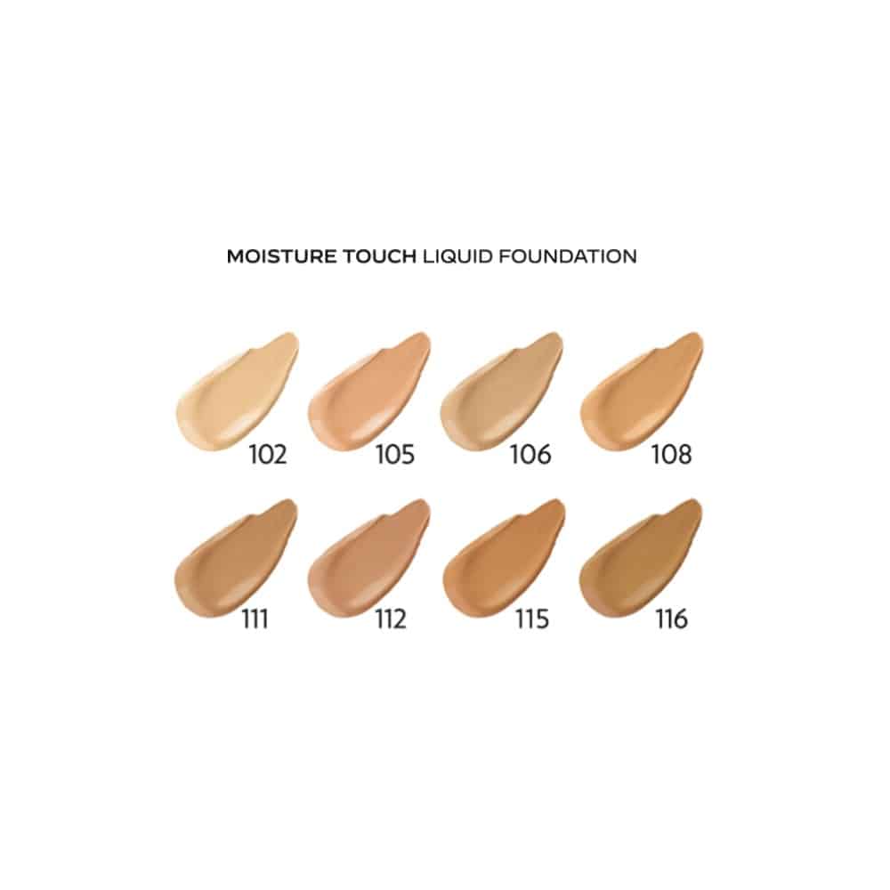 Το υγρό μέικ-απ Moisture Touch Liquid Foundation δημιουργεί ένα λείο, φυσικό, λαμπερό φινίρισμα χάρη στην ελαφριά, δομημένη, καλυπτική του σύνθεση.