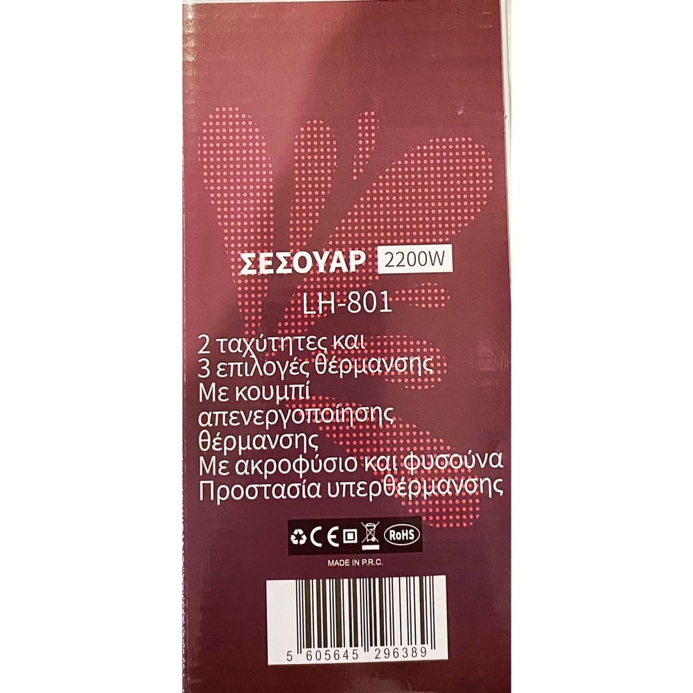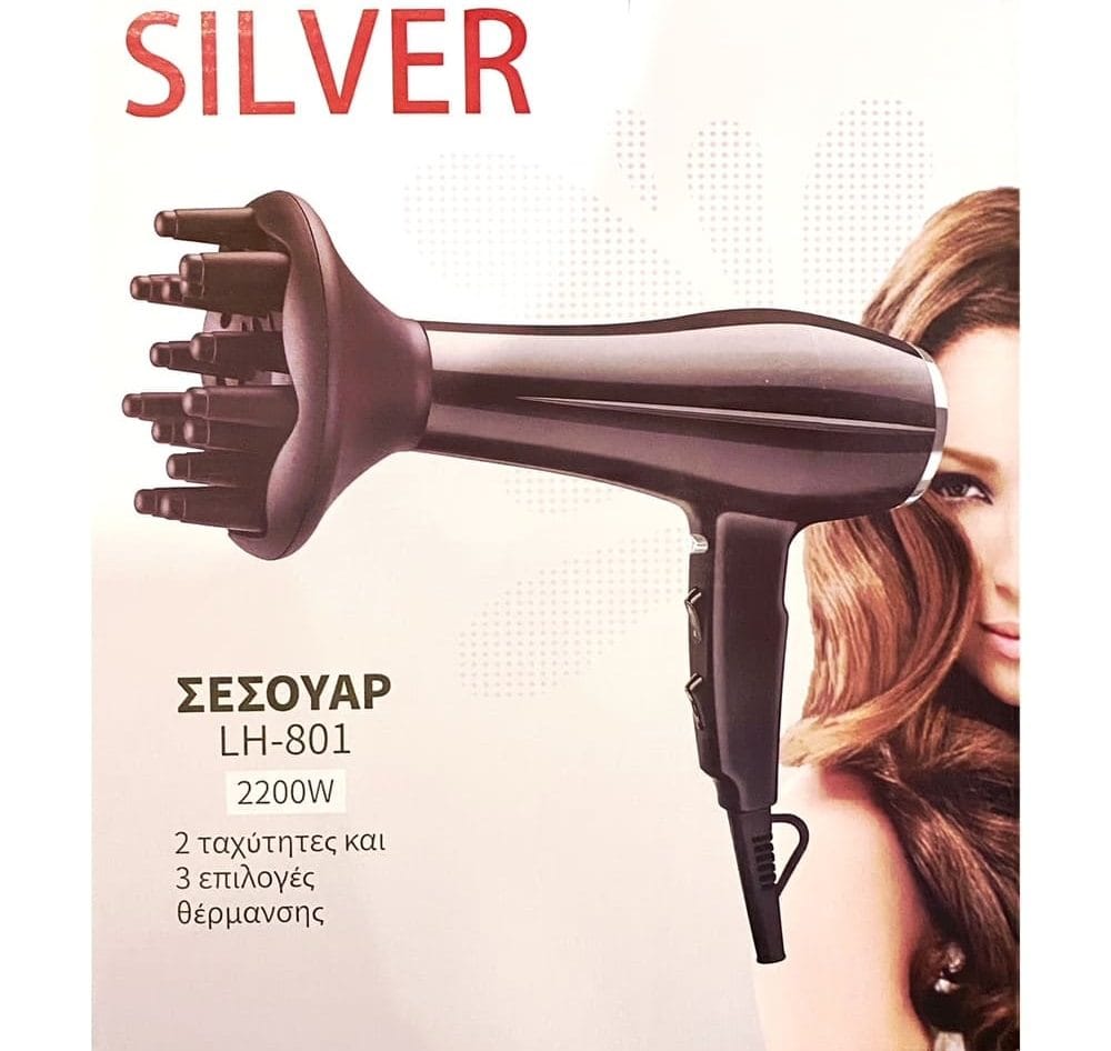 Σεσουάρ μαλλιών οικιακής χρήσης Silver LH-801 με προστασία υπερθέρμανσης.