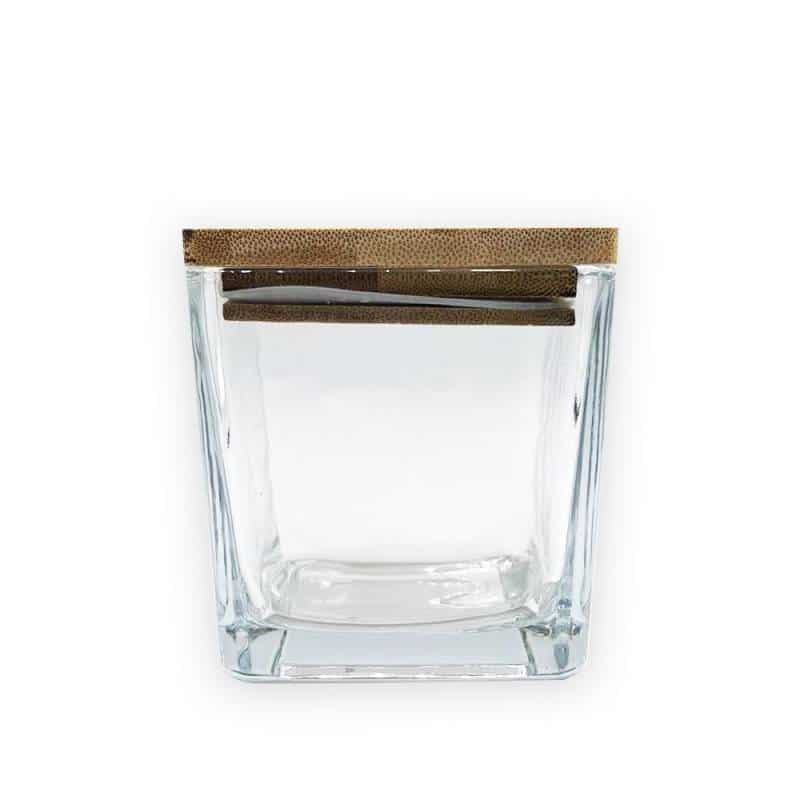 Βάζο για Κερί Διάφανο Τετράγωνο 300 ml με ξύλινο καπάκι