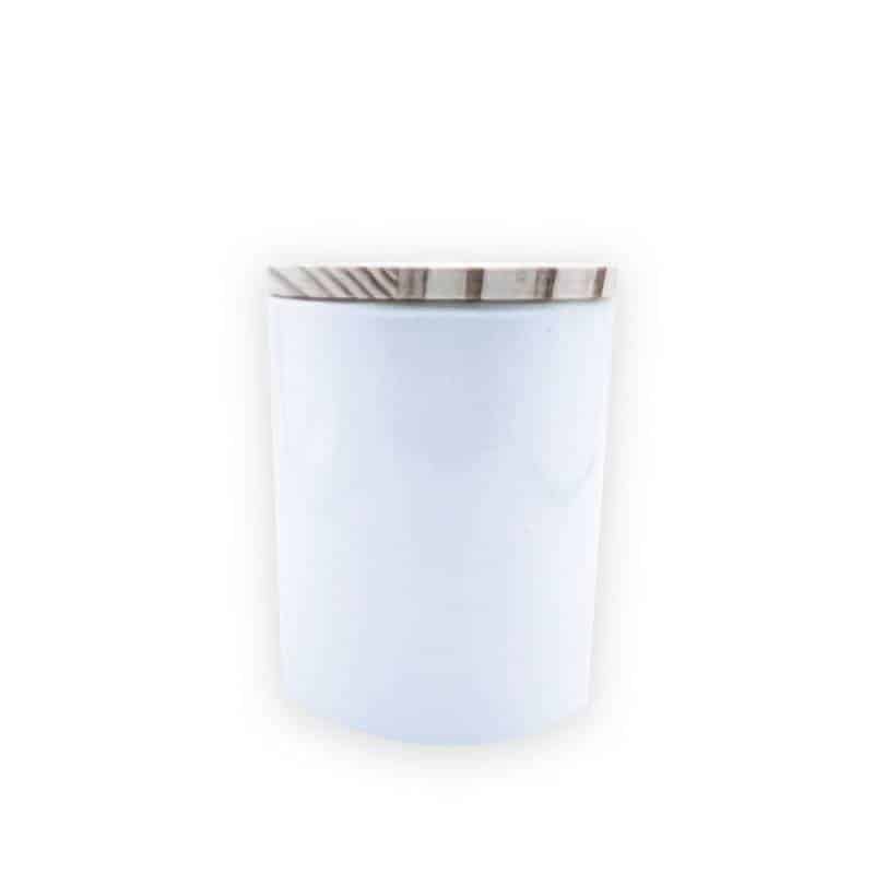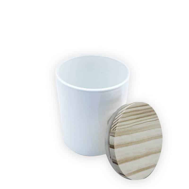 Βάζο για Κερί λευκο γυαλιστερό 220 ml με ξύλινο καπάκι