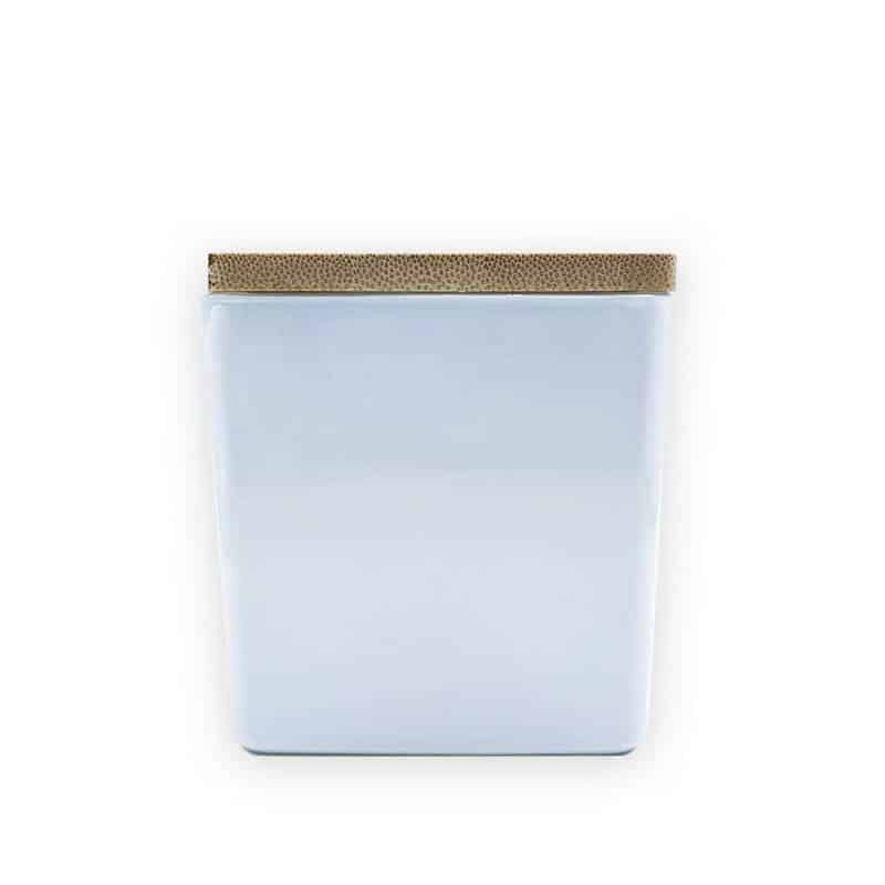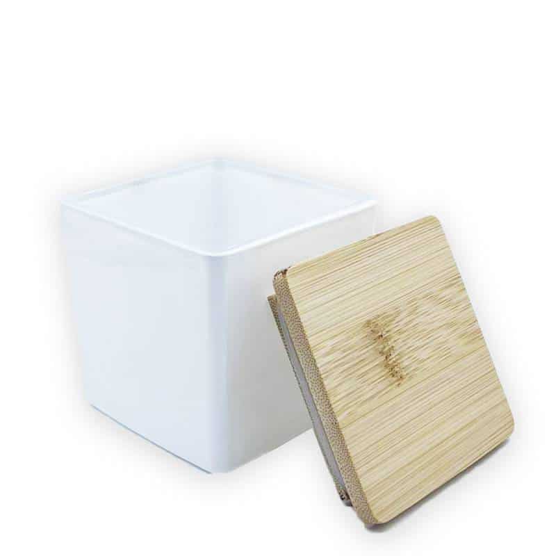 Βάζο για Κερί Λευκό Τετράγωνο 300 ml με ξύλινο καπάκι