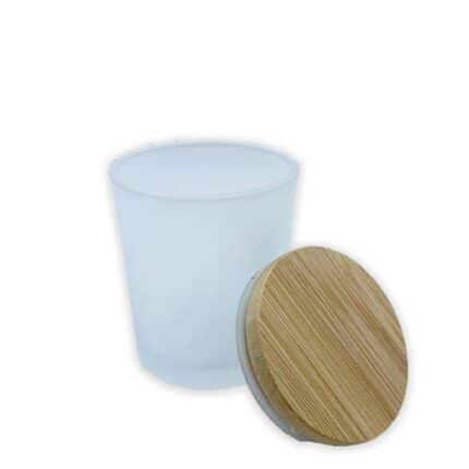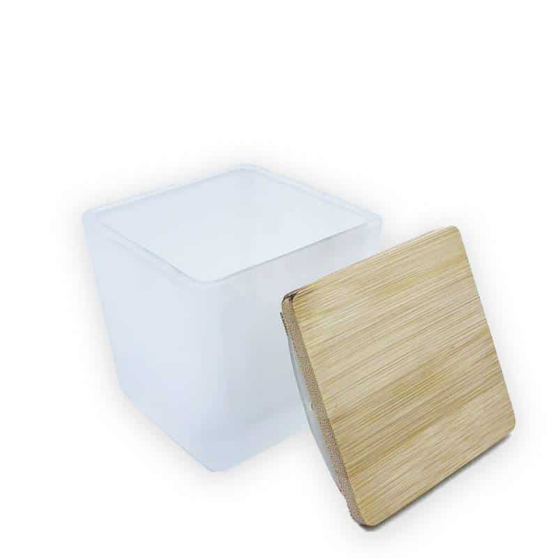 Βάζο για Κερί Ματ Τετράγωνο 300 ml με ξύλινο καπάκι