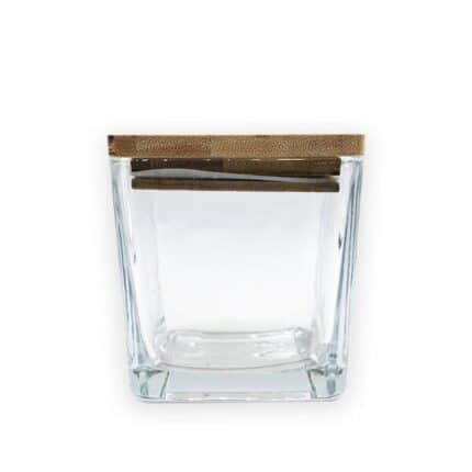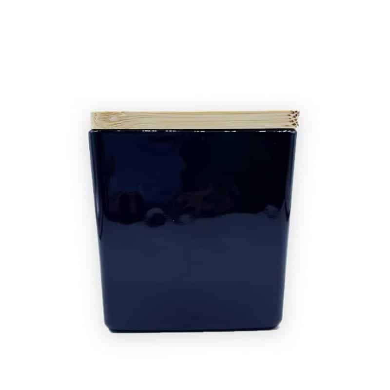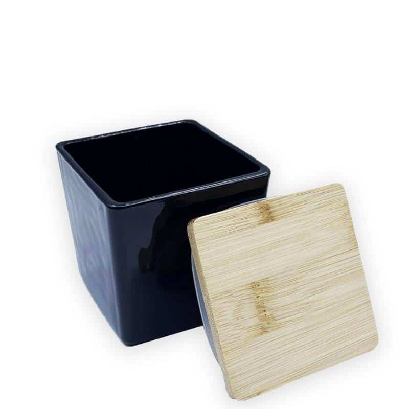 Βάζο για Κερί Μαύρο Τετράγωνο 300 ml με ξύλινο καπάκι